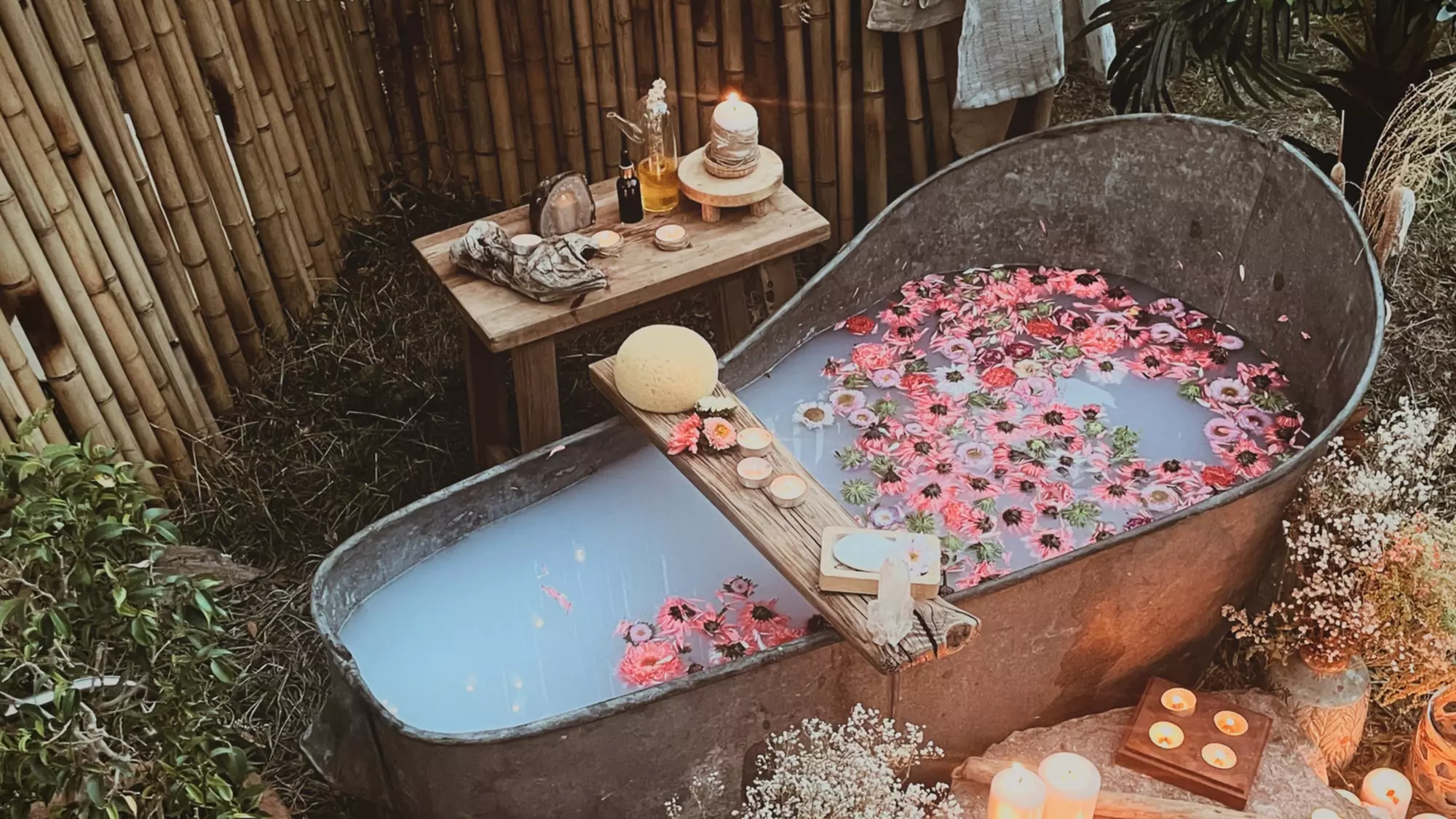 Relax in herbal-infused baths made with plants from our land. Each bath offers a moment to slow down, breathe, and soak in the healing energy of nature.